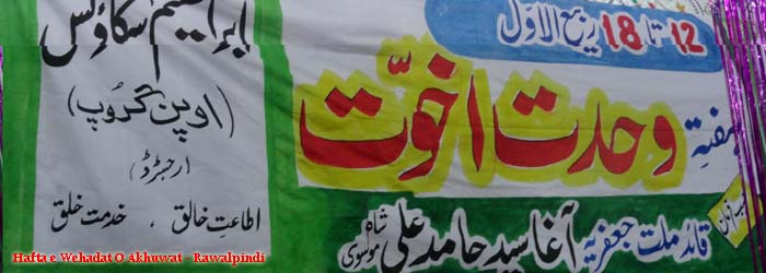 Ibrahim Scouts Held Mehfil e Milad un Nabi (PBUH & HHP) At Qasr e Shabir Rawalpindi in connection with Hafta e Wehadat O Akhuwat to commemorate birth anniversaries of the Holy Prophet and Imam Jaffar Al Sadiq (PBUT) as announced by the Quaid e Millat e Jafariya Agha Syed Hamid Ali Shah Moosavi |