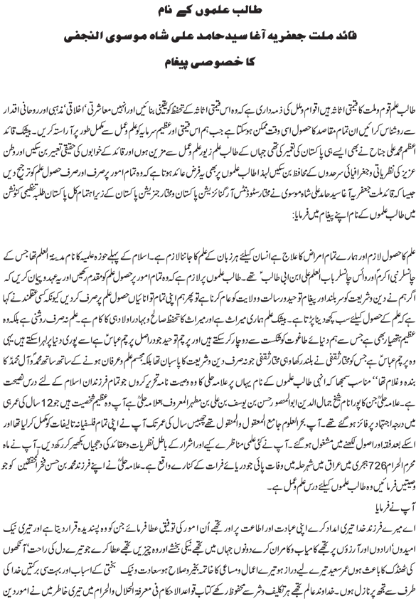To View Previous Message of Quaid Please Click Here